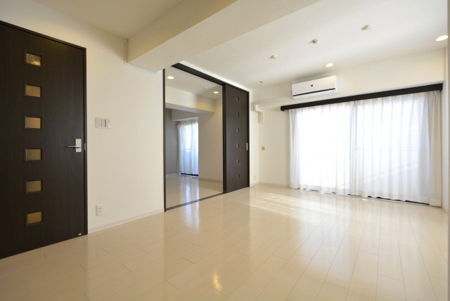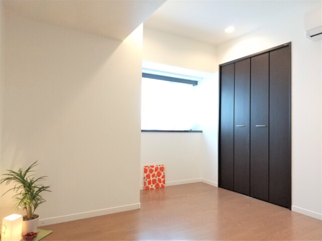 バルコニーに面した二つの窓があるお部屋です。入口にはデッドスペースを作らない引き戸を使用。床面いっぱいを無駄なく使うことが可能です。さらに、扉を全開にすればLDKの一部にすることもできますよ。合わせれば約21帖の贅沢な空間!ライフスタイルや状況でフレキシブルに使えるのは嬉しいですよね。