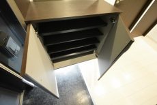 シューズボックスはトールタイプとロータイプが一つづつ。ロータイプの上はカウンターになっていて、いろいろ飾ったり出来ますよ。