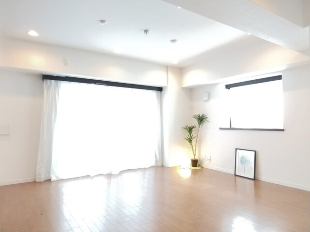 南東・南西の二面採光でとても明るいお部屋です。中間調のフローリングと白のクロス。シンプルな内装には幅広いインテリアを合わせることができそうですね。全ての窓には防音性や断熱性を高めるインナーサッシ付き!