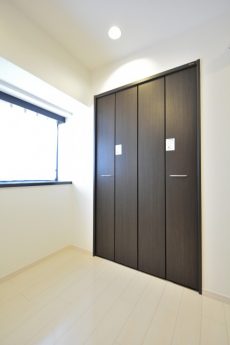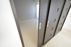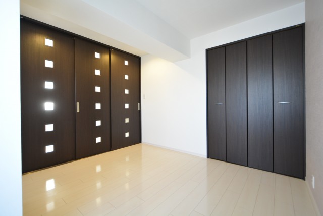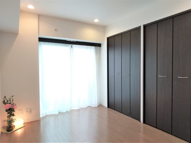 廊下と南東向きバルコニーに面した明るいお部屋です。洋室の中では一番大きくメインのベッドルームにお勧め。収納もしっかり奥行のあるクローゼットが二つも付いていますよ。衣類以外にもスーツケースなどの嵩張るものを入れたりにも使えそうです。