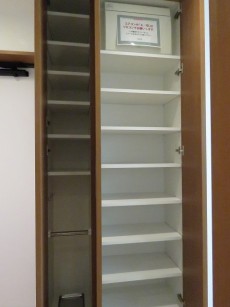 廊下を進んですぐ左側の扉はシューズBOX。傘も仕舞えるので玄関まわりをスッキリ保てそうです。