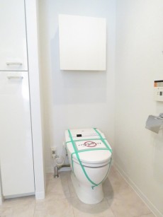 トイレはウォシュレット付き。タンクレスタイプで見た目がスッキリしています。