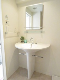 洗面化粧台は鏡+洗面ボウルのシンプルなデザイン。