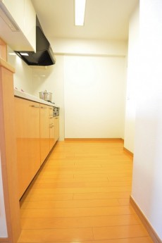 キッチンスペース。一番奥に冷蔵庫が置けるようになっています。