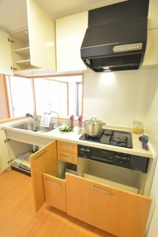 収納場所も上下にしっかりつくられています。調理器具や買い置きの食材など