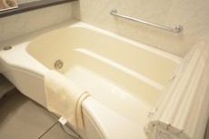 浴槽は大きく体に優しい形になっているので疲れが取れること間違いなしですd(´▽`)