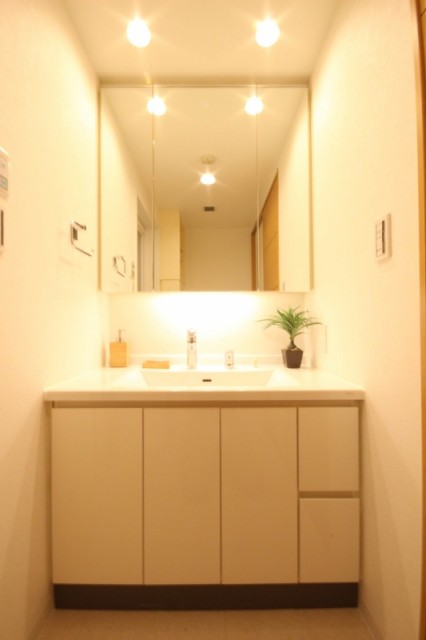 サニタリールームにはこちらの綺麗な三面鏡が設置されています♪