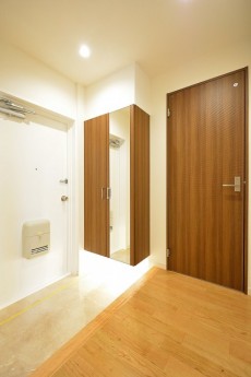 玄関を入ると左側にシューズBOXがあり右側にはエコカラットが設置されています。