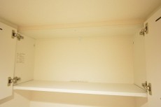 洗濯機置場の横には、収納棚。洗剤等の置場にもってこいです。リネン置場に使っても良いですね(o´∀`ノ