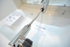 水栓は浄水機能付き、シャワーヘッドになっているのでシンクの隅々まで水を流すことができます。