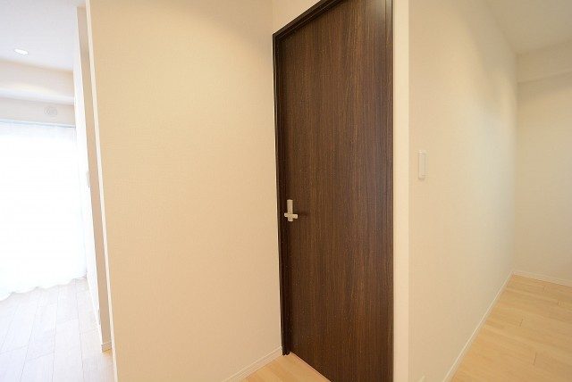 廊下は右に続いています。廊下奥のリビングダイニングキッチンの扉から、光が差し込んでいます♪♪