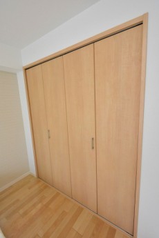 北側にあるクローゼットは、こんどは横に長いタイプです。真ん中の扉がスライドするようになっているので、大きく左右に開きます。