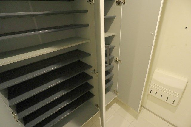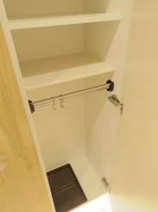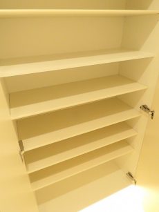 シューズボックスの隣に物入があります。こちらも可動式の棚なので、大きな物から小さな物までいろいろたっぷり収納できそうです(^^)/