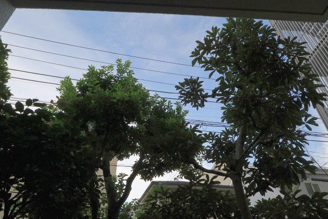 バルコニーの下は先ほど通ってきた桜新町駅へと続く道。そして上には青い空☆
