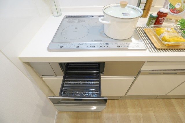 設備をチェックしてみましょう。コンロはIH、グリル、食洗機、浄水器一体型シャワー水栓とスペックはバッチグーです。IHは火を使わないので、火災のリスクが少なくお掃除が楽というメリットがあります。さらに火の調節をしようとしたら髪に引火した、なんてこともなくなります(‘ω’)