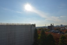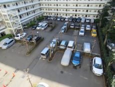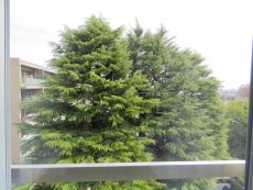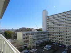 正面の眺望です。眼下に敷地内の駐車場を挟んで他の棟が建っている様子がみえます。距離があるので陽ざしに影響はありません。