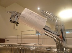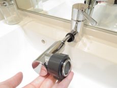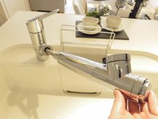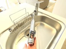 シャワーヘッドタイプなので首が伸び、シンクの隅々まで流せますよ
