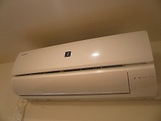 バスルーム内にエアコンが置かれていますが・・・これはお部屋に設置される