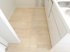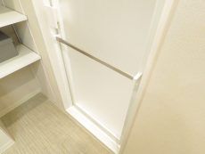 洗濯機置き場になります。上には吊棚がありここにもストック類など置け、毎日の洗濯洗剤の出し入れもしやすいですね。