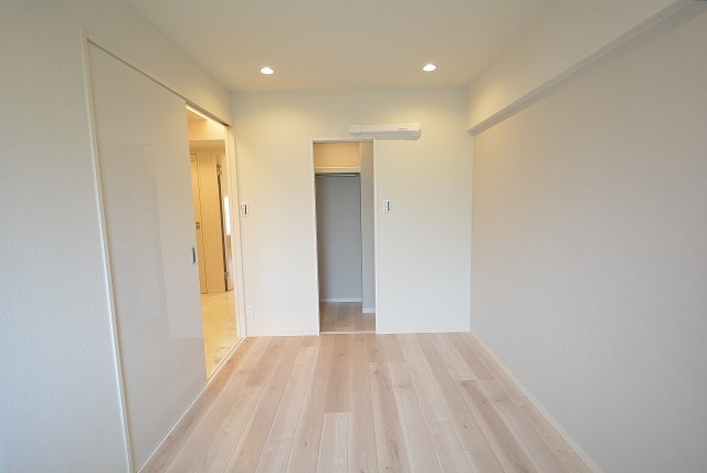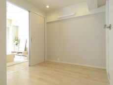 LDKのお隣、こちらもバルコニーに面している6.8帖の南向きの洋室です。エアコンもありもちろんクローゼットもあります。各部屋にクローゼットがあるので、収納はバッチリですね。