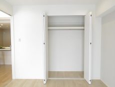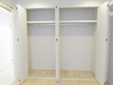 玄関右側の5.3帖の洋室です。こちらにもポールハンガー付きクローゼットがあります。しっかり収納できそうです。