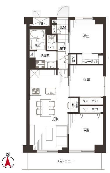 ここで間取りのご紹介です。(3LDK 64.95㎡)