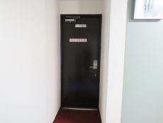 途中にある「ポリ容器置場」の扉はゴミ置場です。