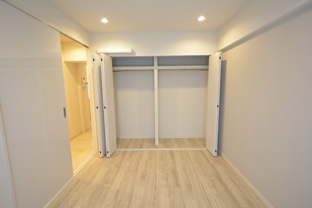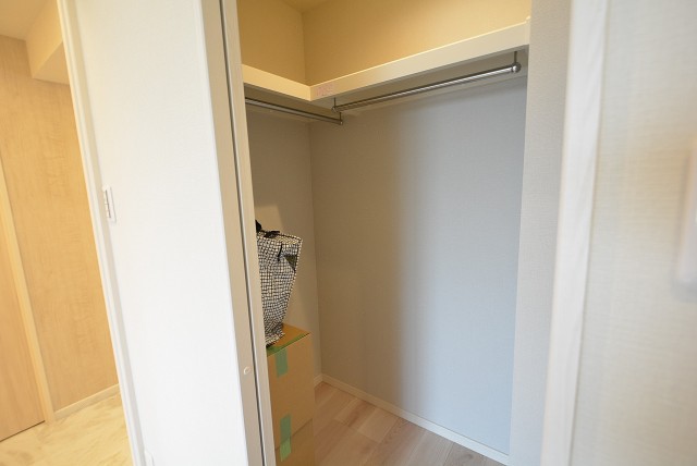 壁一面につくられたクローゼットでお片付けもはかどりそうです。