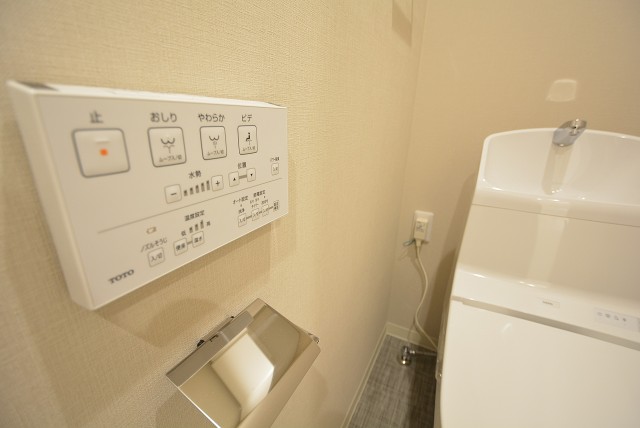TOTO製追い炊き機能付浴室です。浴室換気乾燥機も付いています。追い炊きはいつでも暖かいお湯に入ることができ、家族皆時間帯がバラバラでも安心です。これからの冬場洗濯は乾きが悪いので浴室乾燥があると助かりますね。