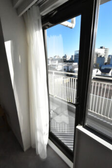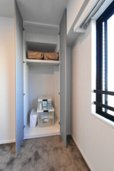 窓の外は眺望良好。クローゼットが付いているので収納家具を置く必要もありません。