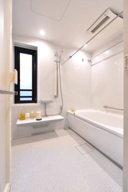1620サイズの広々とした浴室は、白を基調にした明るい雰囲気。マンションでは貴重な窓付きの浴室です。