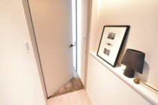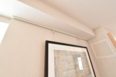 玄関から入って正面の壁にはピクチャーレールが設置されています。最初に目に入るところですから気軽にディスプレイを楽しめるのは嬉しいですよね。