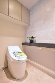 トイレは洗浄機能一体型のタンクレス。ただでさえ広いトイレが、タンクレスのおかげでますます広く見えますね。お掃除がしやすいのも◎