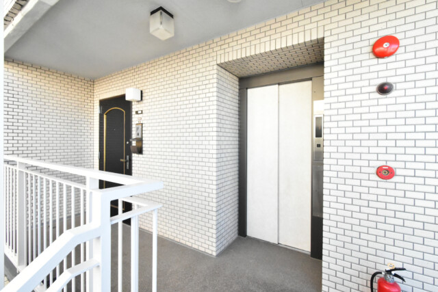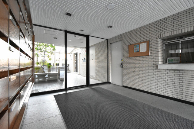 エントランスから中へ入ると、ヴィンテージ感のある木製のポストボックスが目を引く風除室になっています。オートロック完備なのでここからは鍵がないと進めません。