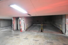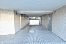 エントランス横のスロープを降りた先が地下駐車場になっています。入口には常にシャッターが下りていて、防犯対策もバッチリ!