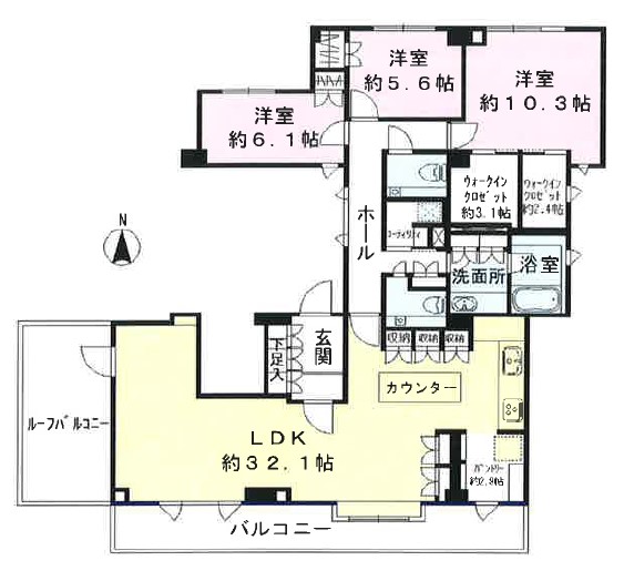 階数は5階、専有面積146.22㎡の3LDK、南西北三方角住戸。140㎡超の広さを誇るファミリータイプのお部屋です。特に32帖のLDKは楽しみですね。ハイル―フ車を駐車可能な専用駐車場付き!(要7,920円/月:管理費・積立金)