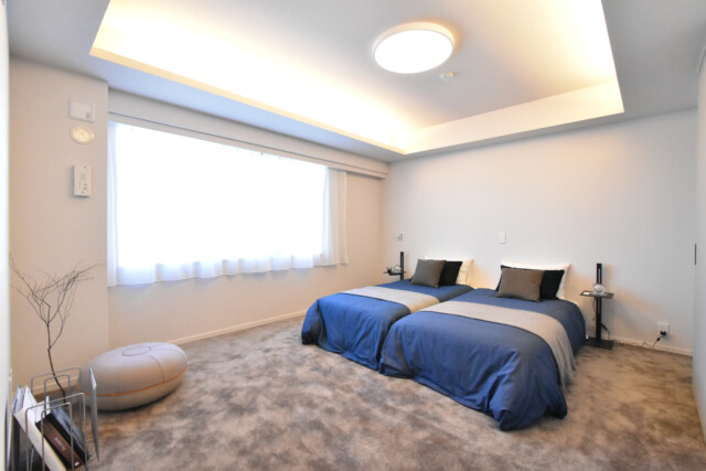 こちらは約10.3帖の洋室1。メインのベッドルームにピッタリです。10.3帖なんて小さめの物件ならLDKの広さですよね!折り上げ天井に間接照明が付いた特別感のあるお部屋です。