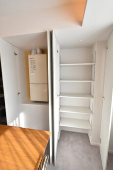 ダイニング部分。二つとも収納かと思いきや、左側は給湯器でした。