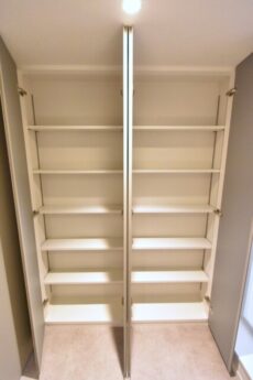 キッチン隣にはパントリーまで付いています。今までもずいぶん収納があった気がしますが、、、いくらあっても困ることはありませんよね。ちなみに、奥のドアからはバルコニーに出られます。
