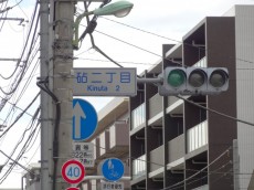 城山通りを祖師谷大蔵駅方面へまっすぐ進み、砧二丁目の交差点まできたら