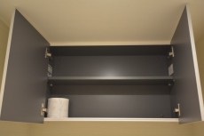 上の吊戸棚にはトイレットペーパー12ロールとトイレクリーナーくらい入る容量