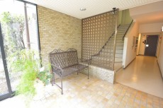 エントランスも邸宅風でシャレています。 建物の周りに緑が多く安らぎます。