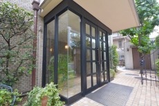 ガラス扉の入口を入るとベンチ、そのお隣には植物の鉢植えがありました。