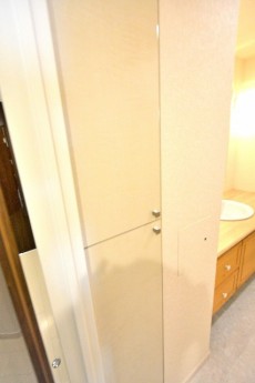 入ってすぐにリネン庫があります。トールサイズなので、バスタオルからハンドタオル、シャンプーのストックまでいろいろ収納できそうです(^^)/