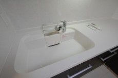 スタイリッシュな洗面ボウルの両サイドは物を置けるスペースがあります。お気に入りのフレグランスを置いたり、ハンドウォッシュやうがいのコップも置けそうです。