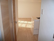 廊下を左に曲がりますと、右側に洗濯機置き場があります。