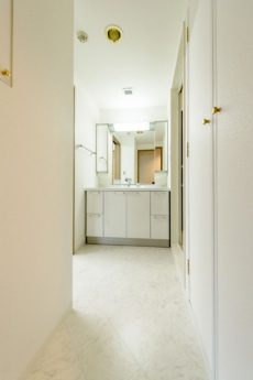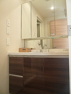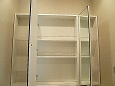 大きなミラーは4面鏡とみやすく、上下の収納もたっぷりあります。