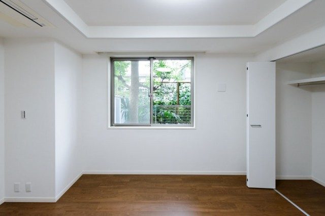 広さは約5帖、ご覧の通り収納も付いています。大きな窓も付いているので自然の光で明るいですね!