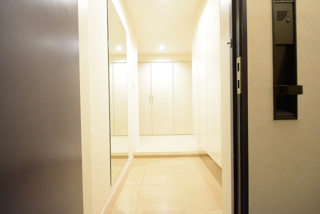 玄関の左側には大きな鏡があるので、お出かけ前の身だしなみチェックは万全です♪