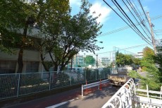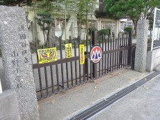 柵の外は 道路をはさんで小学校です。うっすらと小学生の遊ぶ声が